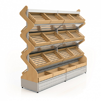 Деревянные стеллажи высоко ценятся благодаря своей экологичности и располагающему, уютному облику - чаще всего их устанавливают в отделах с хлебобулочными изделиями, овощами и фруктами, бакалеей, винами. Деревянные стеллажи “дышат” и подходят для продуктов, нуждающихся в вентиляции. Стенды из дерева имеют особое очарование, поэтому на них часто демонстрируется одежда и обувь, кожгалантерея, книги и сувенирная продукция.